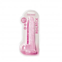 DILDO REALISTA COM TESTÍCULOS CRYSTAL CLEAR10 /25,4 CM ROSA REALROCK