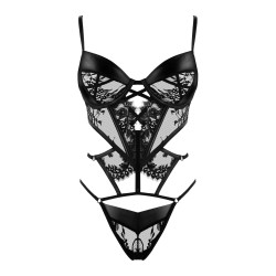 O body Leonela é uma escolha ousada para mulheres confiantes que querem enfatizar sua sensualidade. Feito de material wetlook que se assemelha a látex, e o bonito, delicado laço, oferece um efeito visual extraordinário.
