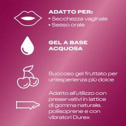 Este lubrificante íntimo da Durex permite suavizar a secura vaginal. Adequado para uso com preservativos. Com sabor a cereja para experiências mais saborosas.