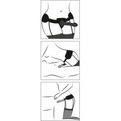 Uma combinação deliciosamente irresistível entre moda e fetiche, este conjunto original STRAP-ON GARTER BELT é uma requintada fusão entre um cinto de ligas em vinil e umas clássicas meias de rede com um arnês de pelúcia para um dildo realista. O arnês é fácil de prender, só tem de apertá-lo firmemente e em seguida prender o dildo erecto no anel de borracha. Basta puxar o dildo através do anel para encaixá-lo. Além disso, com este tipo de retenção torna o arnês compatível com quase qualquer dildo ou vibrador com base, este conjunto inclui também mais dois aneis para possbilitar novas experiências. O dildo é agradavelmente comprido, permitindo assim uma penetração mais profunda, e tem uma glande realista e de textura sensual, que faz com que seja ideal para o jogo vaginal e anal!